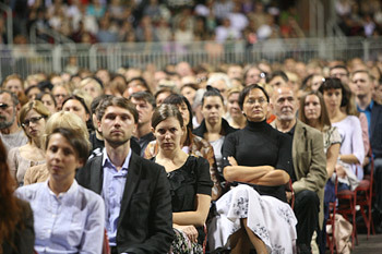 Members of the audience listening to His Holiness the Dalai Lama speaking at the Arena Riga in Riga, Latvia on September 9, 2013. Photo/Igor/SaveTibetRussia