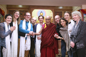 His Holiness the Dalai Lama with Russian journalists after their interview in New Delhi, India on December 20, 2013.