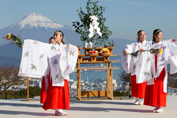 Women from the Shintoist tradition perform ritual prayers at the Interfaith Service for World Peace in Shizuoka, Japan on November 22, 2013. Photo/Office of Tibet, Japan