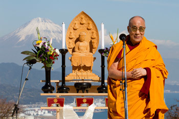 His Holiness the Dalai Lama speaking at the Interfaith Service for World Peace in Shizuoka, Japan on November 22, 2013. Photo/Office of Tibet, Japan