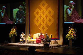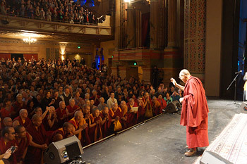 His Holiness the Dalai Lama speaking on the Path to Happiness at the Civic Theatre in Auckland, New Zealand on June 12, 2013. Photo/Cally Stockdale