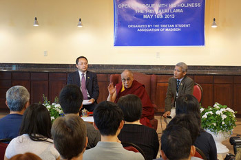 His Holiness the Dalai Lama speaking during a meeting with Chinese students in Madison, Wisconsin on May 16, 2013. Photo/Jeremy Russell/OHHDL