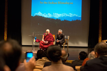 “Concern for the environment is very important,” His Holiness remarked as he began his lecture. “But it’s something I only learned about as a separate issue once I’d arrived in India as a refugee. In the past our human population was relatively small, but more recently it has grown significantly and our lifestyle has dramatically changed. There are clear signs that the climate is changing. In my lifetime glaciers have melted and snow on the mountains has reduced. Natural disasters associated with global warming have increased. I don’t know to what extent human lifestyle has affected this, but we have to look into what effective actions we can take. As for myself, I promised Sunderlal Bahuguna I would do what I could to support environmental protection in the Himalayas.”