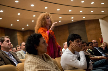 A member of the audience asking His Holiness the Dalai Lama a question during his address at the 10th T N Khoshoo Memorial Award ceremony at the Chinmaya Mission in New Delhi, India on December 7, 2013. Photo/Tenzin Choejor/OHHDL