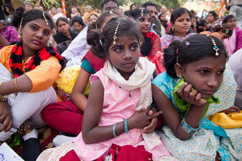 Students listening to His Holiness the Dalai Lama speaking during his visit to the Care Home for Street Children in Mehrauli, New Delhi, India on December 7, 2013. Photo/Tenzin Choejor/OHHDL
