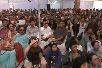 | Audience members listening to His Holiness the Dalai Lama address the inauguration of a two day national seminar on the Nalanda Tradition of Buddhism in Asia in New Delhi, India on November 13, 2013. Photo/Lobsang Tsering/OHHDL |