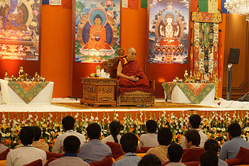 His Holiness said that he would talk about the development of altruism tomorrow in association with a Medicine Buddha blessing. The session was unexpectedly concluded with a stirring performance by a visiting group of Sufi musicians and Dervishes from Turkey who had requested the opportunity to dance for the assembled audience, who gave them a warm welcome.
