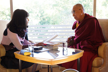 The next question concerned why His Holiness retired from his political responsibilities. He told her that it was part of his intention, cherished since childhood in Tibet, to further democracy. Once Tibetans had elected leaders for the third time in 2011, he felt it was time to step back. Moreover, he also put an end to custom of the Dalai Lamas wielding political power in the future.