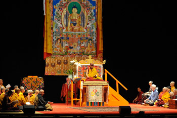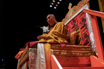 With abundant energy His Holiness taught significantly beyond the announced time today. He will resume his teaching tomorrow morning.