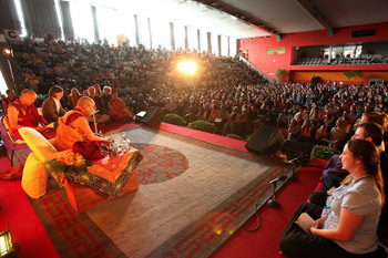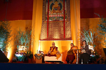 His Holiness then led the audience through a simple ceremony for taking refuge in the Three Jewels and generating the awakening mind. He once again thanked the organizers for arranging this opportunity and encouraged the audience to try to incorporate what they had heard into the way they lead their lives.