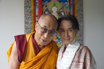 His Holiness the Dalai Lama and fellow Nobel Peace Laureate Aung San Suu Kyi during their meeting in Prague, Czech Republic on September 15, 2013. Photo/Jeremy Russell/OHHDL