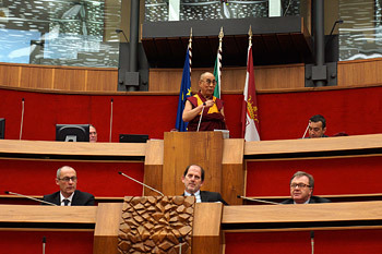 His Holiness the Dalai Lama speaking at the Provincial Council Chamber in Trento, Italy, on April 11, 2013. Photo/Jeremy Russell/OHHDL