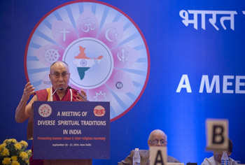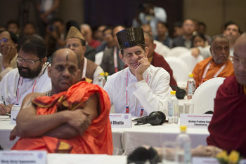 Delegates listening to presentations during the first plenary session of the "Meeting of Diverse Spiritual Traditions in India" hosted by His Holiness the Dalai Lama in New Delhi, India on September 20, 2014. Photo/Tenzin Choejor/OHHDL