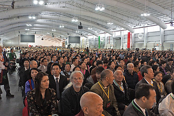 Some of the over 5,000 members of the Tibetan community listening to His Holiness the Dalai Lama's address at the Javits Center in New York, NY, USA on November 5, 2014. Photo/Jeremy Russell/OHHDL