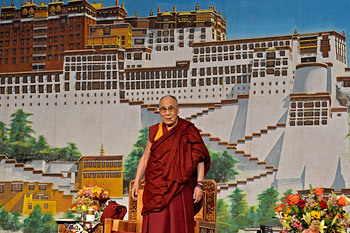 New York, NY, USA, 5 November 2014 - Under grey skies, the New York streets wore a sombre look as His Holiness the Dalai Lama drove to the Javits Convention Center for almost his last engagement of this visit to the USA. Inside it was colourful and 5000 assembled Tibetans were full of smiles as His Holiness took the stage before a backdrop of the Potala Palace. Everyone stood for the Tibetan National Anthem, and then the President of the New York & New Jersey Tibetan Association (NYNJTA) presented a report to His Holiness. He explained that the association began in 1979, that it is non-sectarian and acknowledges no regional bias either. Its objective is to provide a platform for all Tibetans to have a sense of community and to participate is a cultural life. It also concerns itself with offering opportunities for Tibetan children to study Tibetan and so on. The association meets the cost of such classes. By keeping up the Green Book contributions, members of the association contribute $200,000 per year to the CTA.