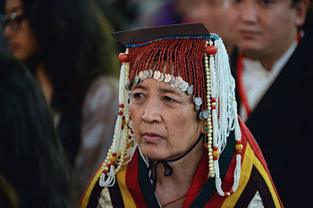 A member of the Tibetan community listening to His Holiness the Dalai Lama's address at the Javits Center in New York, NY, USA on November 5, 2014. Photo/Sonam Zoksang