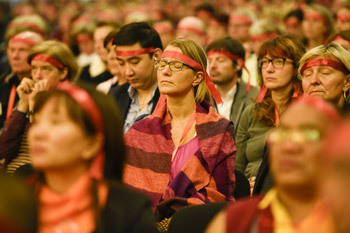 Members of the audience during the bestowing of the Avalokiteshvara Empowerment by His Holiness the Dalai Lama at the Congress Center in Hamburg, Germany on August 26, 2014. Photo/Manuel Bauer