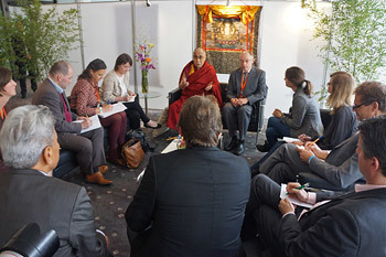 His Holiness the Dalai Lama meeting with leading German Journalists in Hamburg, Germany on August 26, 2014. Photo/Jeremy Russell/OHHDL