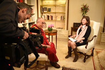 | His Holiness the Dalai Lama giving an interview to