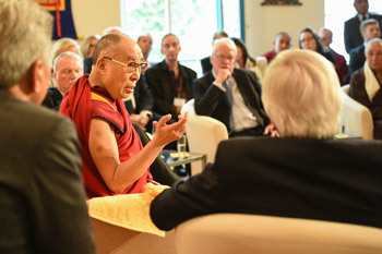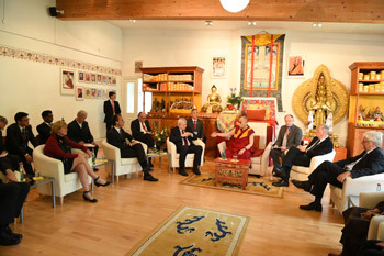 His Holiness the Dalai Lama speaking to Minister-President, Vice President of the Parliament and leaders of political parties of Hessen state and board members of the Tibethaus Germany in Frankfurt, Germany on May 13, 2014. Photo/Manuel Bauer