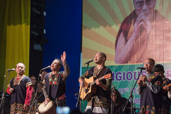 Musicians performing traditional songs at the conclusion an interfaith event in Shillong, Meghalaya, India on February 5, 2014. Photo/Tenzin Choejor/OHHDL
