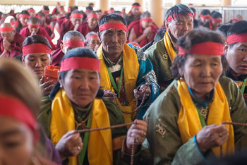 Members of the audience wearing ritual blindfolds during the Avalokiteshvara Empowerment conferred by His Holiness the Dalai Lama in Dharamsala, HP, India on December 5, 2014. Photo/Tenzin Choejor/OHHDL