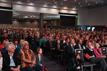 Some of the over 3000 people attending the forum on Science of Education of the Heart with His Holiness the Dalai Lama at the Vancouver Convention Center in Vancouver, Canada on October 21, 2014. Photo/Jeremy Russell/OHHDL