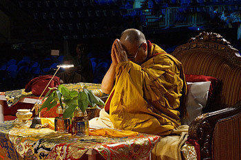 His Holiness the Dalai Lama giving the Avalokiteshvara empowerment in Vancouver, Canada on October 23, 2014. Photo/Paula Wallis