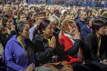 Some of the more than 5,000 people attending His Holiness the Dalai Lama’s teachings in Vancouver,Canada on October 23, 2014. Photo/Paula Wallis