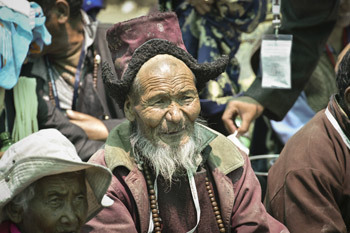 Leh, Ladakh, J&K, India, 12 July 2014 - Today saw the culmination of the 33rd Kalachakra Empowerment. After spending five hours on the preparatory rituals and eating a quick lunch His Holiness the Dalai Lama was ready to begin the final session of the empowerment before midday. He took the time again to greet the huge crowd and salute the Lamas, local dignitaries and other guests before taking his seat on the throne.