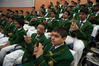 Students listening to His Holiness the Dalai Lama speaking at the Association of Heads of Anglo-Indian Schools in India's 92nd Annual Conference at Bishop Cotton School in Bangalore, India on January 5, 2014. Photo/Tenzin Choejor/OHHDL