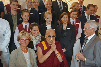 Among his engagements during his stay in Hamburg, His Holiness will speak tomorrow on secular ethics. The following two days he will teach Shantideva’s classic work, ‘A Guide to the Bodhisattva’s Way of Life’, concluding his Buddhist teachings with an Avalokiteshvara empowerment. He will also visit the Hamburg Museum of Ethnology, which is currently presenting an exhibition about Tibetan nomads and their vanishing way of life, and meet with Tibetan and inter-religious groups.