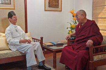 New Delhi, India , 21 November 2014 - Before setting out for his other engagements this morning, His Holiness the Dalai Lama met with a representative of one of the world’s oldest religious traditions, a Parsee or Zoroastrian. He and Dr Homi B Dhalla first encountered one another when they were both guests of Pope John Paul II in Assisi in 1986. They have met several times since. On this occasion Dr Dhalla wanted to ask His Holiness several questions in connection with a documentary film he is making about peace and human rights.