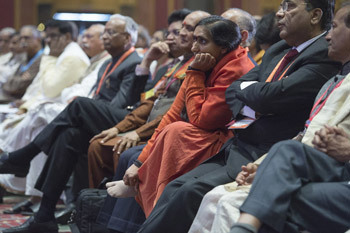 Some of the over 1800 delegates from 50 countries listening to His Holiness the Dalai Lama delivering the inaugural address at the 1st World Hindu Congress in New Delhi, India on November 21, 2014. Photo/Tenzin Choejor/OHHDL