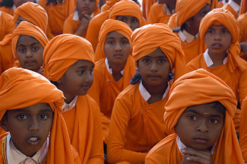Schoolchildren in the garb of Vivekananda attending celebrations of the 150th anniversary of the birth of Swami Vivekananda in Coimbatore, Tamil Nadu, India on January 7, 2014. Photo/Jeremy Russell/OHHDL