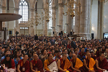 In the church of Laurenskerk, His Holiness addressed about 2000 Tibetans who live in the Nordic countries. Looking out over a sea of Tibetan faces, he began: