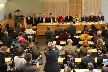 His Holiness the Dalai Lama meeting with members of the Norwegian Parliamentary Group for Tibet at the Norwegian Parliament in Oslo, Norway on May 9, 2014.