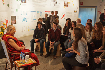 His Holiness the Dalai Lama meeting with group of high school students at the Nobel Peace Centre in Oslo, Norway on May 9, 2014. Photo/Jeremy Russell/OHHDL