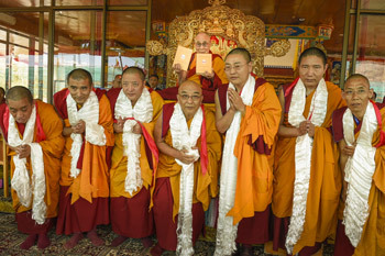 Briefly recalling the qualities of Nagarjuna and his followers, Asanga and his, the logicians Dignaga and Dharmakirti, the Vinaya masters Gunaprabha and Shakyaprabha and Atisha, who like Shantarakshita and Kamalashila before him came and taught in Tibet, he repeated one of the later verses of the invocation: