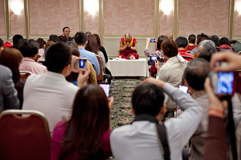His Holiness the Dalai Lama speaking to a group of Chinese during his last day in Tokyo, Japan on April 18, 2014. Photo/Office of Tibet, Japan