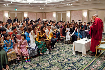 When he met with Tibetans who live in Japan His Holiness said he didn’t have a lot to say because he has been able to meet them quite often.