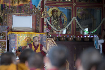 His Holiness the Dalai Lama during his visit to Tsechen Do Ngag Choeling Sakya monastery in Mundgod, Karnataka, India on December 29, 2014. Photo/Tenzin Choejor/OHHDL
