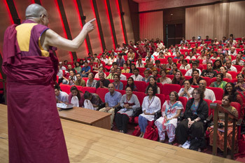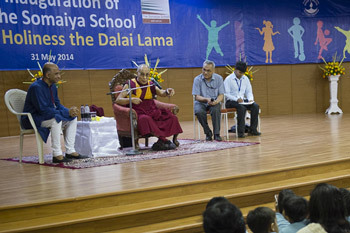 His Holiness the Dalai Lama speaking to students and staff of Somaiya School in Mumbai, India on May 31, 2014.