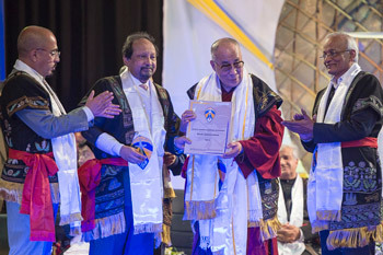 Pro-Chancellor Dr Glenn C Kharkongor spoke of the great privilege he felt in introducing His Holiness and inviting him to give the Convocation Address and the hall fell completely quiet as he began.