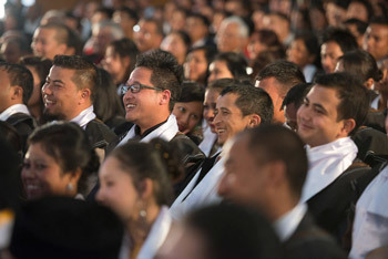 Students listening to His Holiness the Dalai Lama speaking at Martin Luther Christian University's Convocation ceremony in Shillong, Meghalaya, India on February 3, 2014. Photo/Tenzin Choejor/OHHDL