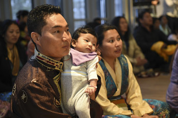 Members of the Tibetan community listening to His Holiness the Dalai Lama during their meeting in Frankfurt, Germany on May 15, 2014. Photo/Manuel Bauer