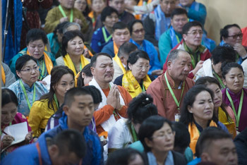 Some of the over 600 Mongolians attending the first day of His Holiness the Dalai Lama's four day teaching at the Theckchen Chöling Tsuglagkhang in Dharamsala, HP, India on December 2, 2014. Photo/Tenzin Choejor/OHHDL