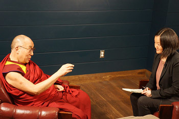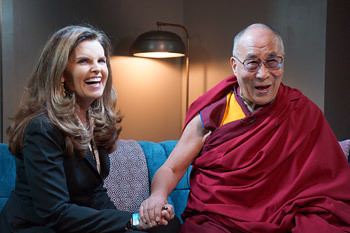His Holiness the Dalai Lama with Maria Shriver during their interview for NBC News in Los Angeles on February 25, 2014. Photo/Jeremy Russell/OHHDL