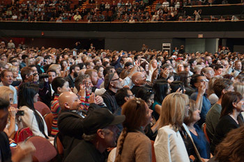 Members of the audience listening to His Holiness the Dalai Lama speaking at the Forum in Los Angeles on February 25, 2014. Photo/Jeremy Russell/OHHDL
