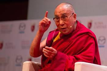 His Holiness the Dalai Lama speaking during the second discussion of the 14th World Summit of Nobel Peace Laureates in Rome, Italy on December 12, 2014. Photo/Paolo Tosti